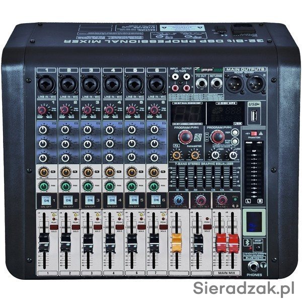 6-kanałowy mikser audio z wbudowanym urządzeniem efektowym DSP oraz interfejsem USB.