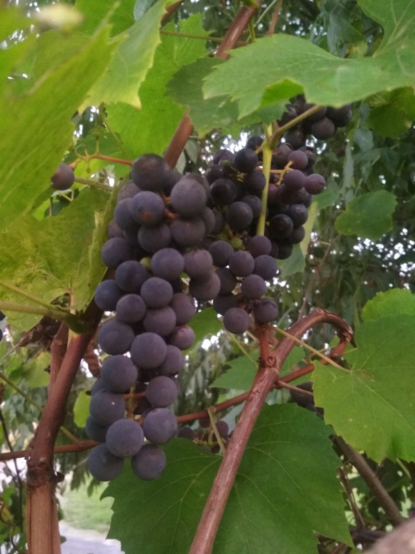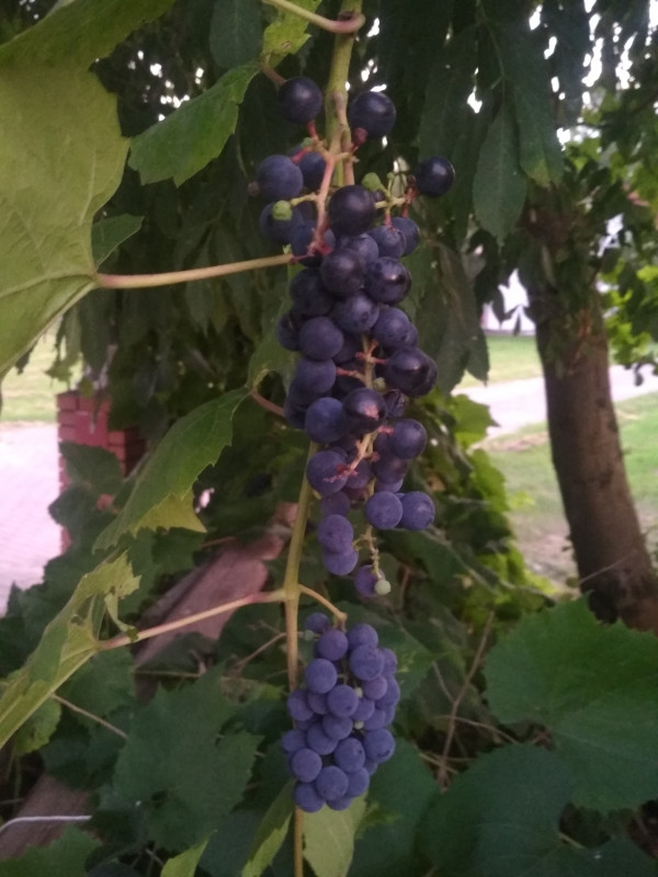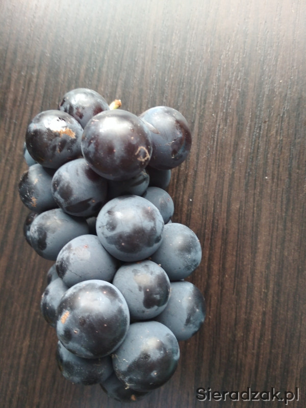 Do sprzedania winogrono ciemne.średniej wielkości na wino. Do samodzielnego zbioru z wysokość do 1,5m. Z uwagi na ładne pogody winogrono słodkie .