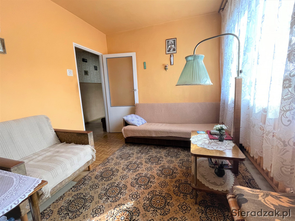 Do sprzedania mieszkanie dwupokojowe o pow. 37 m.kw. położone na pierwszym piętrze w bloku w Kobierzycku, gm. Wróblew, powiat sieradzki.