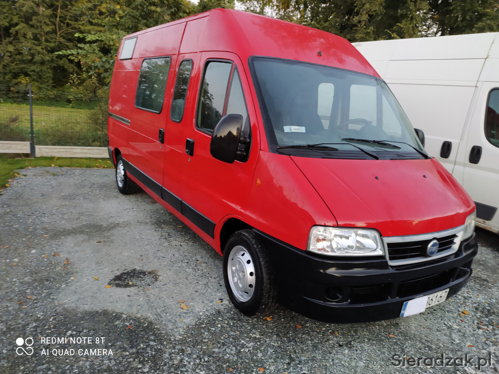 Witam, posiadam na sprzedanie Fiata Ducato MAXI brygadówkę. Auto z 2005 roku z ekonomicznym silnikiem 2,3 110KM. Przebieg 314tys.km. Zarejestrowany na 6 osób jednak foteli posiada 5, wystarczy założyć podwójny fotel do przodu i mamy 6 osobowy. Posiada hak, który jest wbity w dowód. Dość bogato wyposażony jak na busa, posiada klimę, tempomat, el.szyby, 2xAirBag.