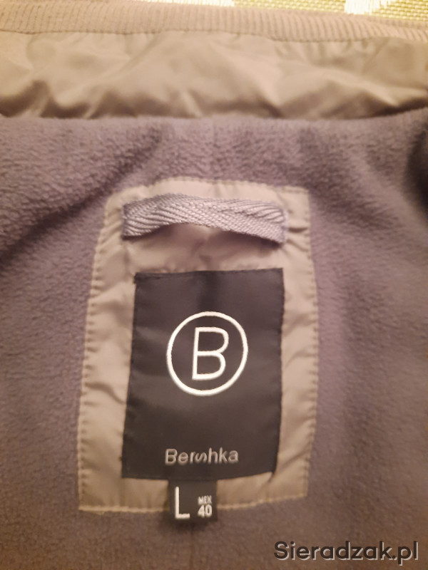 Kurtka męska firmy BERSHKA, rozmiar L, ocieplona polarem. Kolor szary, używana jeden sezon, czysta bez plam i uszkodzeń. Lekka i ciepła. Polecam!