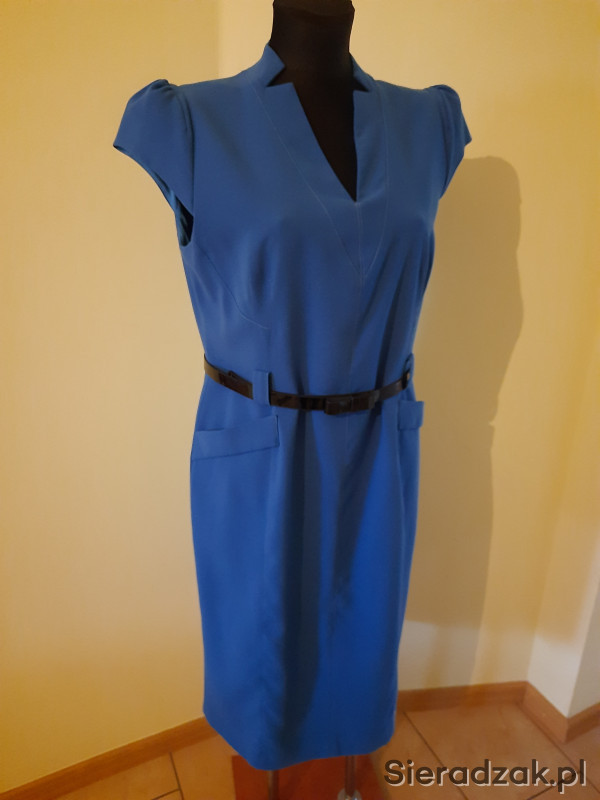Sukienka z paskiem firmy MONNARI, za kolana w kolorze intensywnym niebieskim z podszewką , rozmiar 44. Tkanina miękka i przyjemna w dotyku, sukienka dobrze dopasowana zaszewkami, czysta, używana okazjonalnie. Polecam!