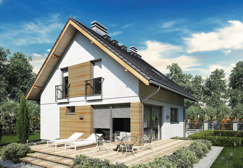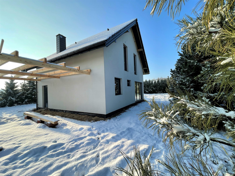 A może jesteś jedną z trzech zaprzyjaźnionych rodzin, dla której zamieszkanie w bezpośrednim sąsiedztwie byłoby wartością dodana każdego dnia ? Mamy świetną wiadomość – powstają już dwa nowe identyczne domy na sąsiednich działkach. Bryła budynku osadzona na rzucie prostokąta o wymiarach 8,35 x 8,95 m z przystawioną wiatą na samochód o wymiarach 4,06 x 6,52 m. Na budynku dach dwuspadowy o kącie nachylenia 40 st. Do budowy wykorzystano pustak ceramiczny, ściany zewnętrze ocieplono 15 cm styropianem grafitowym i zaciągnięto klejem.