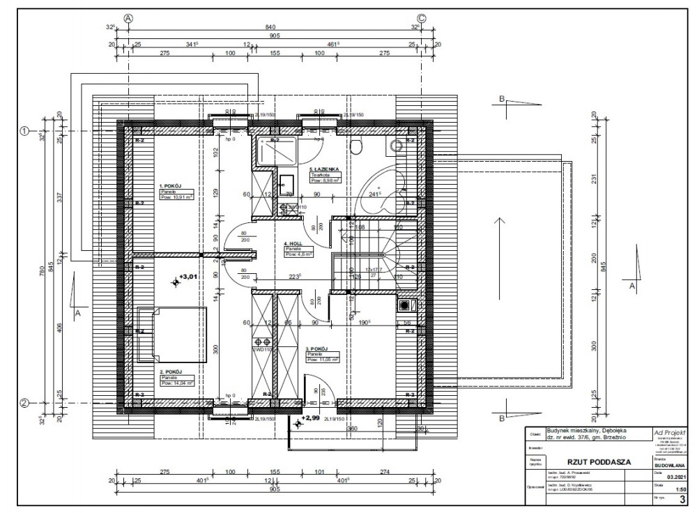 Budynek wolnostojący, parterowy z poddaszem użytkowym, bez podpiwniczenia.