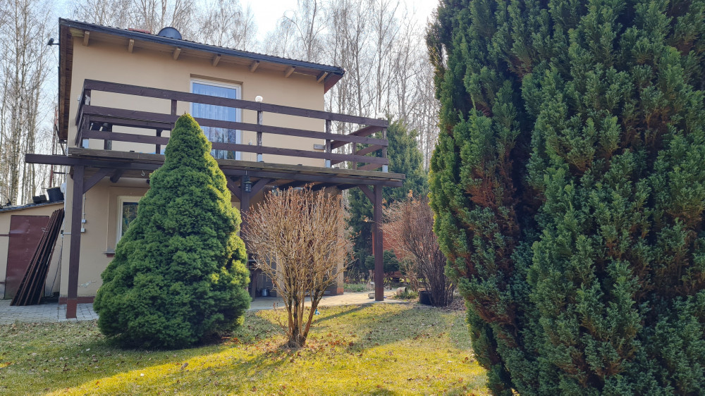 Na działce znajduje się dom letniskowy wybudowany metodą tradycyjną o powierzchni 50 m2 składający się z kuchni, pokoju dziennego, łazienki oraz pokoju sypialniano - dziennego. Dom letniskowy posiada okna PCV, drzwi antywłamaniowe, ocieplenie styropianem 5 cm, otynkowanie oraz dach na którym znajduje się blacha trapezowa wymieniona 2 lata temu.