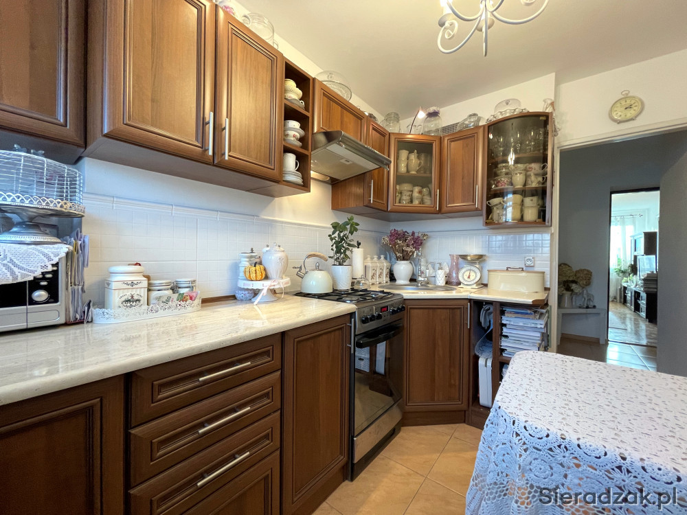 - dobrze doświetlonej kuchni przestronnej i funkcjonalnej na tyle, że oprócz zabudowy mebli mieści się dwuosobowy stół,