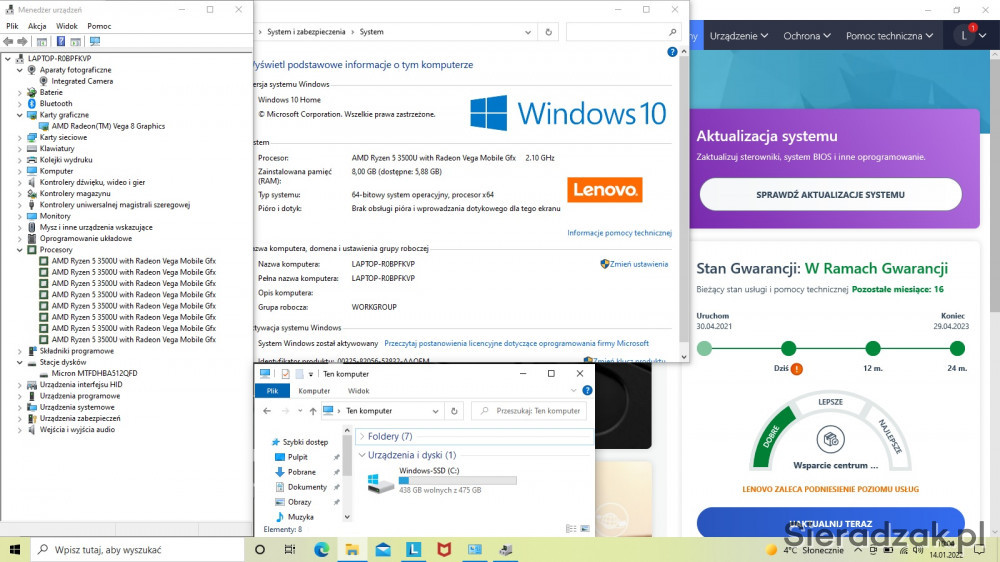 POCHODZI Z POLSKIEJ DYSTRYBUCJI - WG. NR SERYJNEGO NA G W A R A N C J I P R O D U C E N T A DO 29.04.2023 R. NIE POSIADAMY PIERWOTNEGO D O W O D U Z A K U P U . WG. INFORMACJI NA STRONIE LENOVO (POTWIERDZONE RÓWNIEŻ NA INFOLINII) NIE JEST WYMAGANY.
