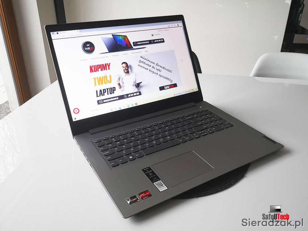 Do sprzedania oferujemy notebook'a Lenovo IdeaPad 3-17ADA z czterordzeniowym procesorem AMD Ryzen 5 3500u 4x2.1 GHz (do 3.7 GHz TURBO, 4 MB pamięci CACHE L3), 8 GB RAM, dyskiem SSD 512 GB, zintegrowaną ale wydajną kartą graficzną AMD Radeon Vega Graphics, 2xUSB 3.0, HDMI, BLUETOOTH, oraz matowym ekranem 17 cali w rozdzielczości HD+ 1600x900.