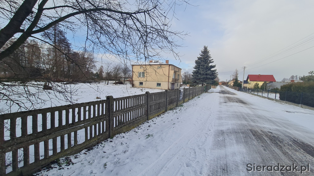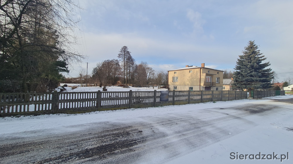 Nieruchomość zlokalizowana po środku wsi, częściowo ogrodzona płotem betonowym oraz siatką