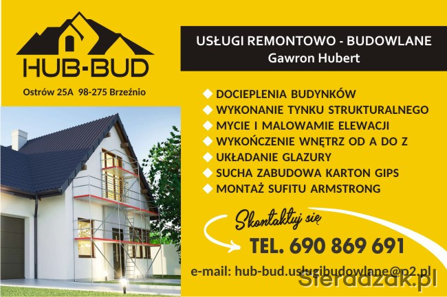 FIRMA HUB-BUD Usługi Remontowo- Budowlane Gawron Hubert zatrudni do pracy osoby z doświadczeniem w pracach budowlanych: