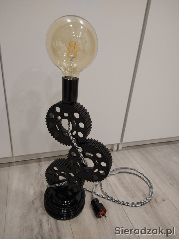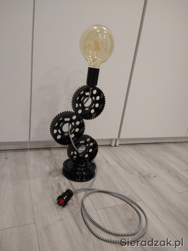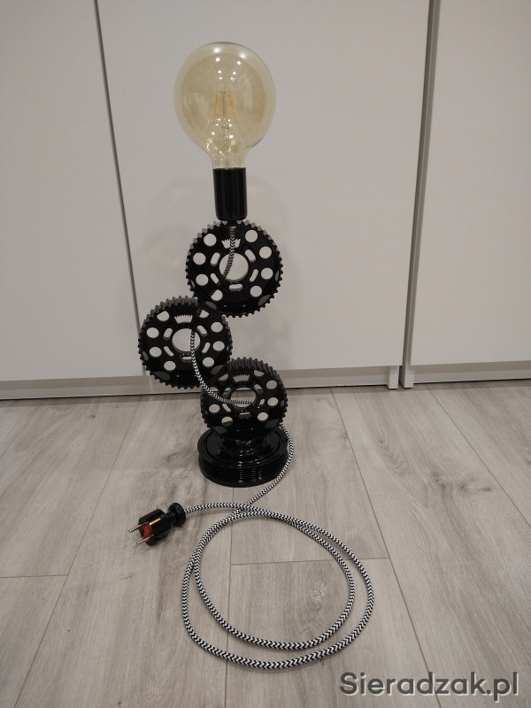Witam, sprzedam stylową lampkę stołową wykonaną z części samochodowych. Kolor: RAL 9005 - czarny połysk. Lampka może być fajnym pomysłem na prezent. Odbiór osobisty.
