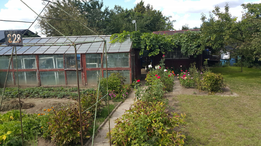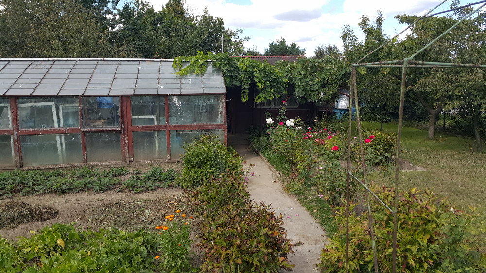 Zadbana, domek i szklarnia.