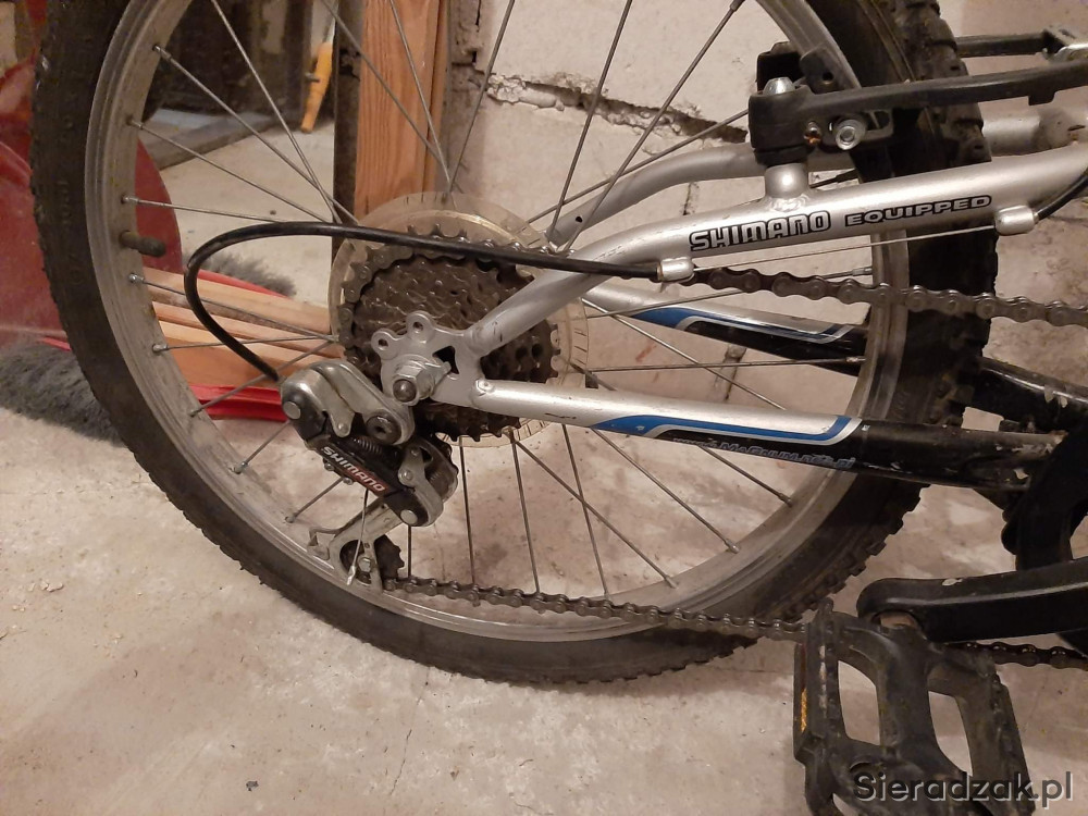 Rower posiada amortyzatory, koła 20", przerzutki Shimano.