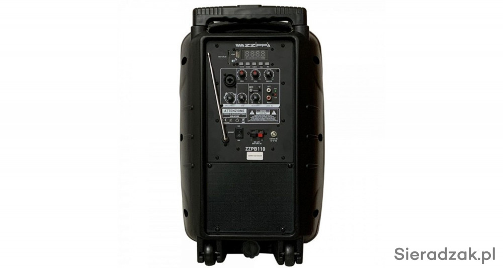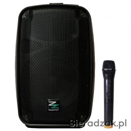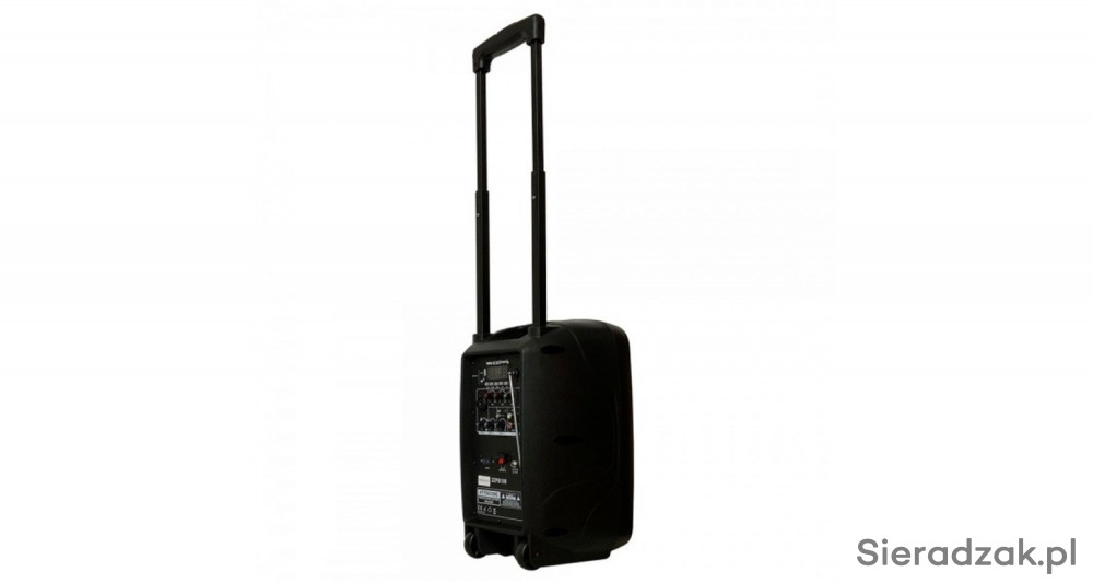 Przenośny system wzmacniający, z wbudowanym odtwarzaczem MP3 (SD i USB), Radiem FM odbiornikiem Bluetooth oraz jednym doręcznym mikrofonem bezprzewodowym.
