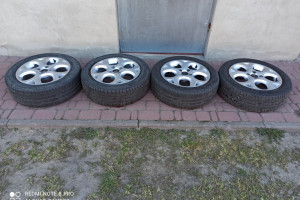 Dwie opony Michaline i dwie Firestone. Opony z 2015 i 2017 roku w stanie naprawdę dobrym. . Felgi oryginalne od Citroëna. Polecam. Więcej informacji udzielę telefonicznie 509-470-172