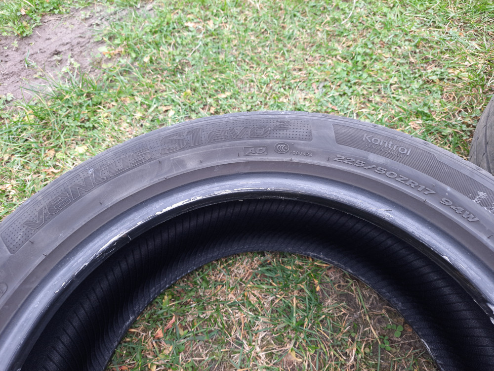 Posiadam do sprzedania 2 opony letnie firmy Hankook model Ventus S1 evo2 w rozmiarze 225/50/R17 z rocznika 2017. Opony posiadają około 3,5 mm bieżnika. Nie są uszkodzone, nie biją i nie są głośne. Cena za 2 sztuki to: 75 zł