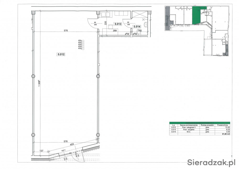 Wynajmę przestronny lokal usługowo-handlowy w Złoczewie przy ul. Kilińskiego w Galerii Drewutnia. Jego powierzchnia to 81,8 m2 w tym: 72,5 m2 części usługowej, 6,3 m2 pomieszczenie socjalne, 3 m2 WC.