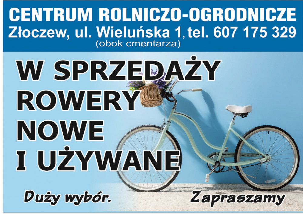 Centrum Rolniczo-Ogrodnicze w Złoczewie (obok cmentarza) zaprasza wszystkich zainteresowanych zakupem roweru do zapoznania się z naszą ofertą rowerową.