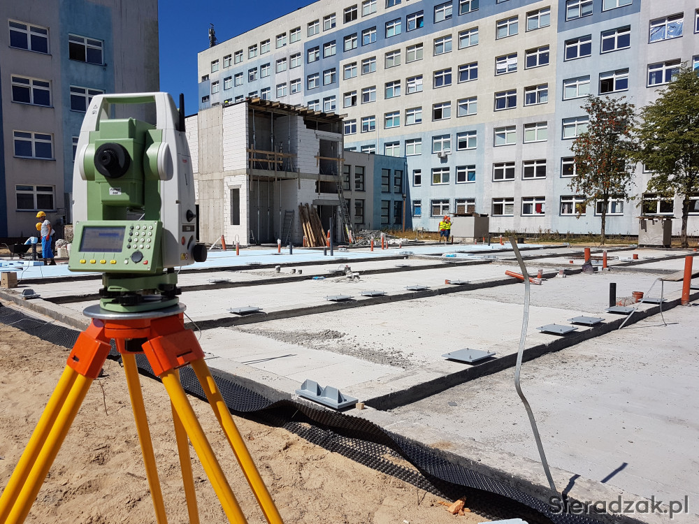 Praca przy wykonywaniu pomiarów geodezyjnych w terenie oraz opracowywaniu ich wyników w biurze.