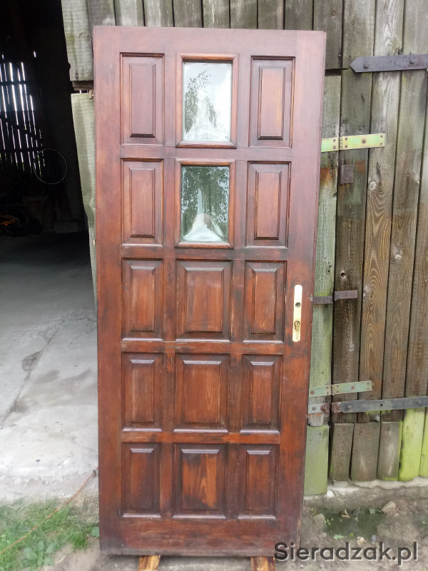 Sprzedam drzwi drewniane zewnętrzne prawe, szerokość 90cm, mogą służyć jako drzwi zastępcze na budowie.