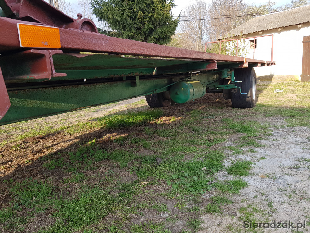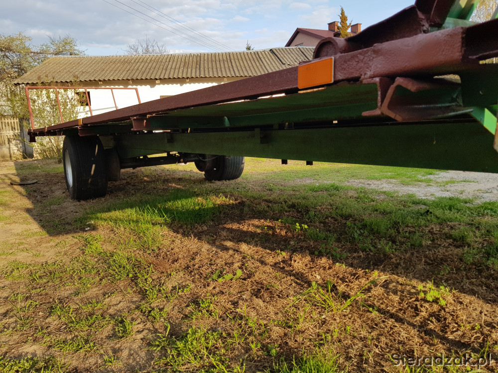 Sprzedam lub zamienię przyczepę do skrzyniopalet/słomy. Wymiary 10mx2.8m. Oś z hamulcem pneumatycznym. Opony 435/50R19,5 w dobrym stanie. Solidna rama hutnicza. Więcej informacji pod numerem tel.