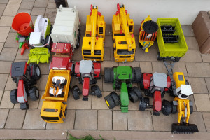 Sprzedam zestaw zabawek, przeważnie marki Bruder. Prawie wszystkie są w dobrym, albo bardzo dobrym stanie, chociaż kilka jest już zniszczonych, ponieważ syn bawił się nimi na dworze, ale większość używanych była wyłącznie w domu. Mogę sprzedać w większych zestawach albo na sztuki.