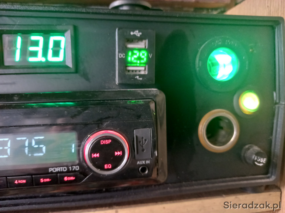 Radio z wejściami USB i AUX. oraz wyjściem na cztery kolumny , z wzmacniaczem i anteną samochodową