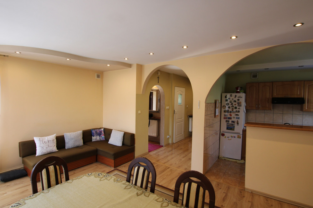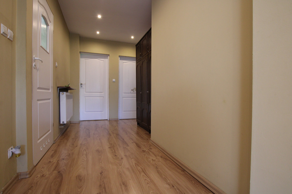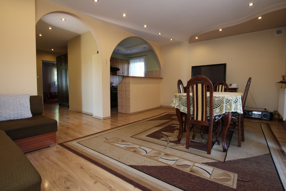 Środek nieruchomości utrzymany w dobrym standardzie - gotowy do zamieszkania. Na podłodze w kuchni oraz łazienkach znajduje się terakota, w pokojach panele podłogowe.