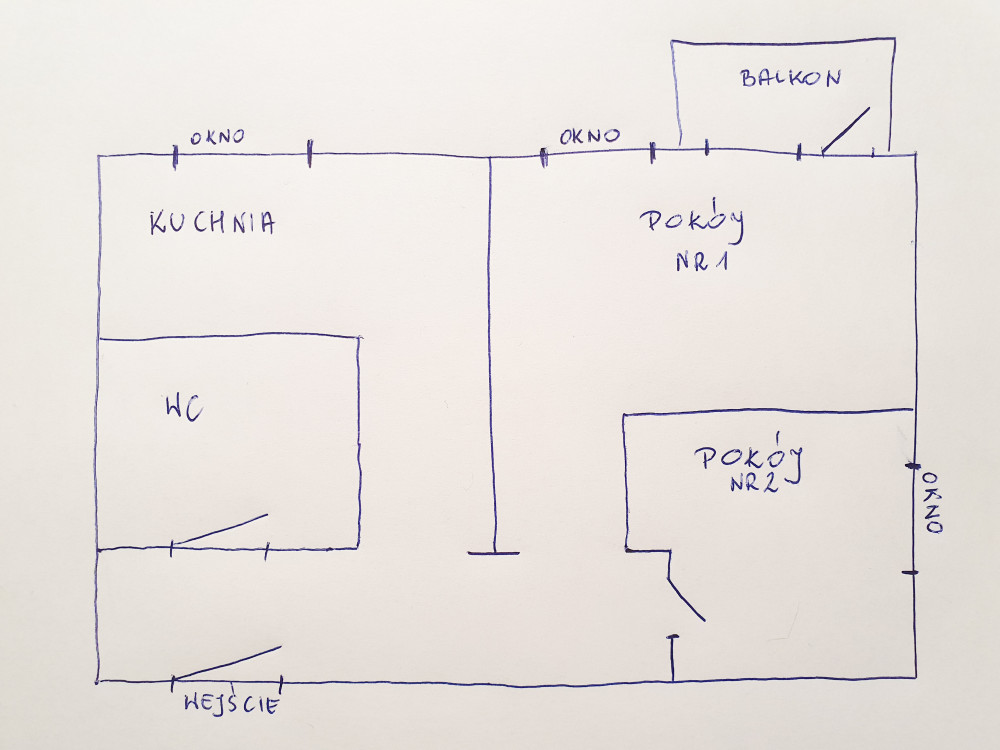 W skład mieszkania wchodzi duży pokój z balkonem, sypialnia ( pokój dziecięcy ), kuchnia oraz łazienka z WC. Wystawa okien na dwie strony świata sprawia, że słońce doskonale doświetla każde pomieszczenie. Dodatkowo blok jest aktualnie w trakcie prac termomodernizacyjnych, polegających na dociepleniu i zmianie elewacji, które podniosą dodatkowo jego atrakcyjność.