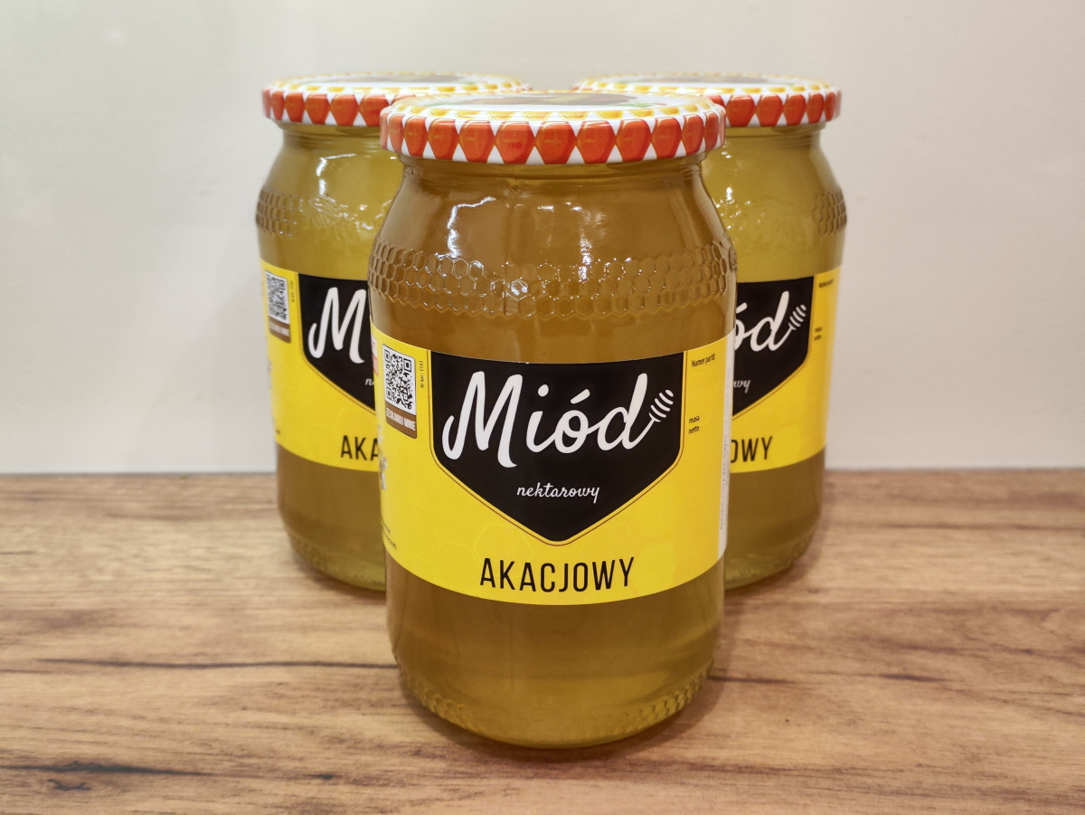 Sprzedam miód akacjowy z naszej pasieki ze zbiorów w maju 2024. Miód w słoikach 900ml o wadze netto miodu min. 1,20kg.