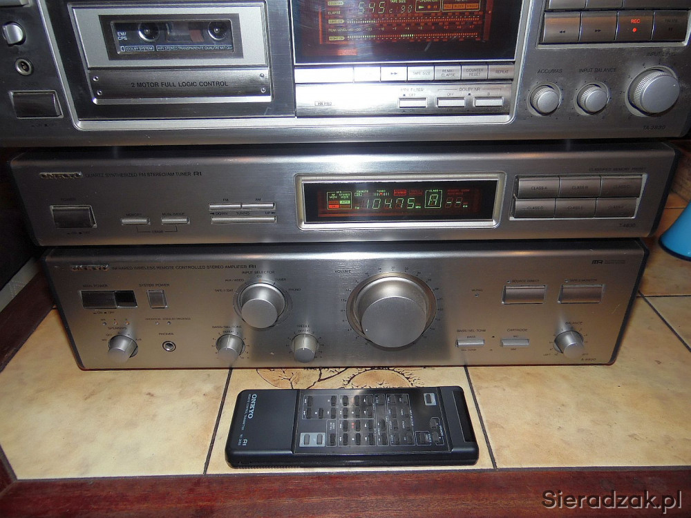 Wzmacniacz stereo Onkyo A-8830 2x95Watt przy 4ohm 2x60Watt przy 8ohm kolor tytanowy z pilotem. Made in Japan!!! Wysoki model.