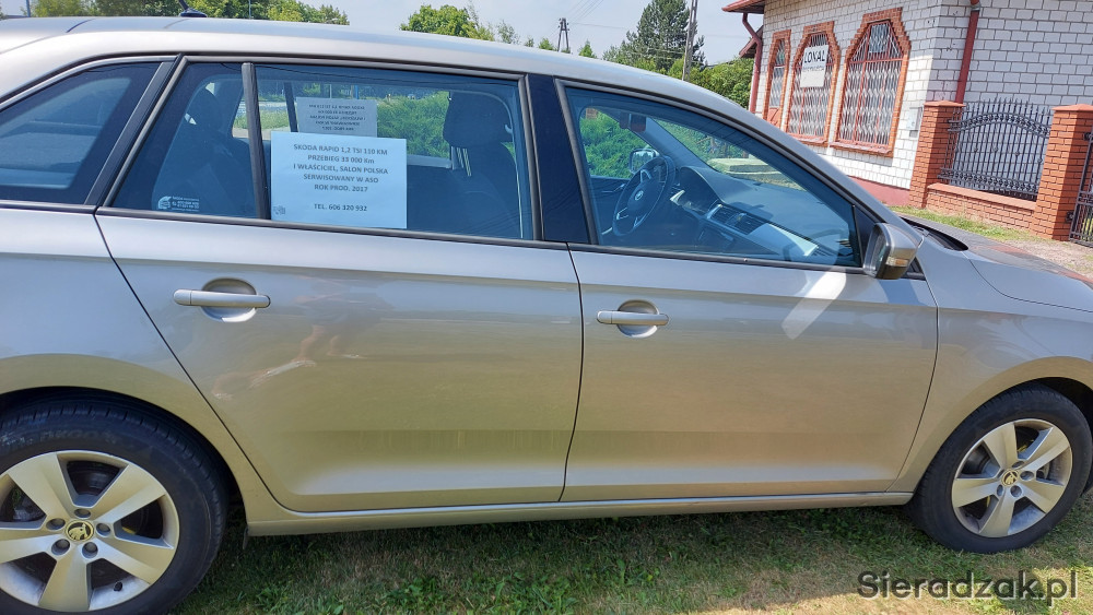 skoda Rapid 1,2 TSI 110KM, salon, rok 2017, przebieg 33000,pierwszy właściciel, stan bd.