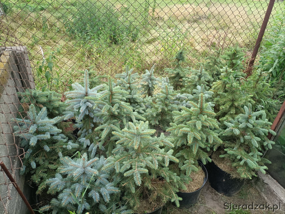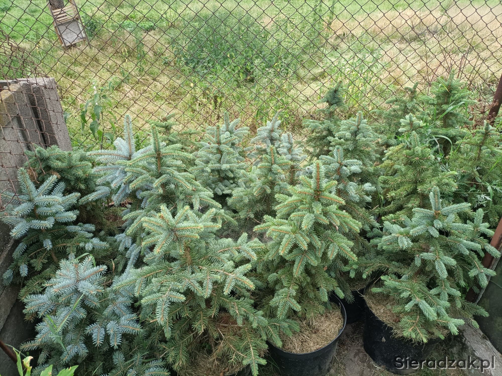 Witam mam do sprzedania Świerk srebrny w donicach, wysokość świerku 70cm + donica 20cm. Ogółem 90cm wysokości.