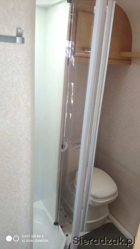 - osobną łazienkę z oddzielną dużą kabiną prysznicową (toaleta chemiczna opróżniana z zewnątrz);