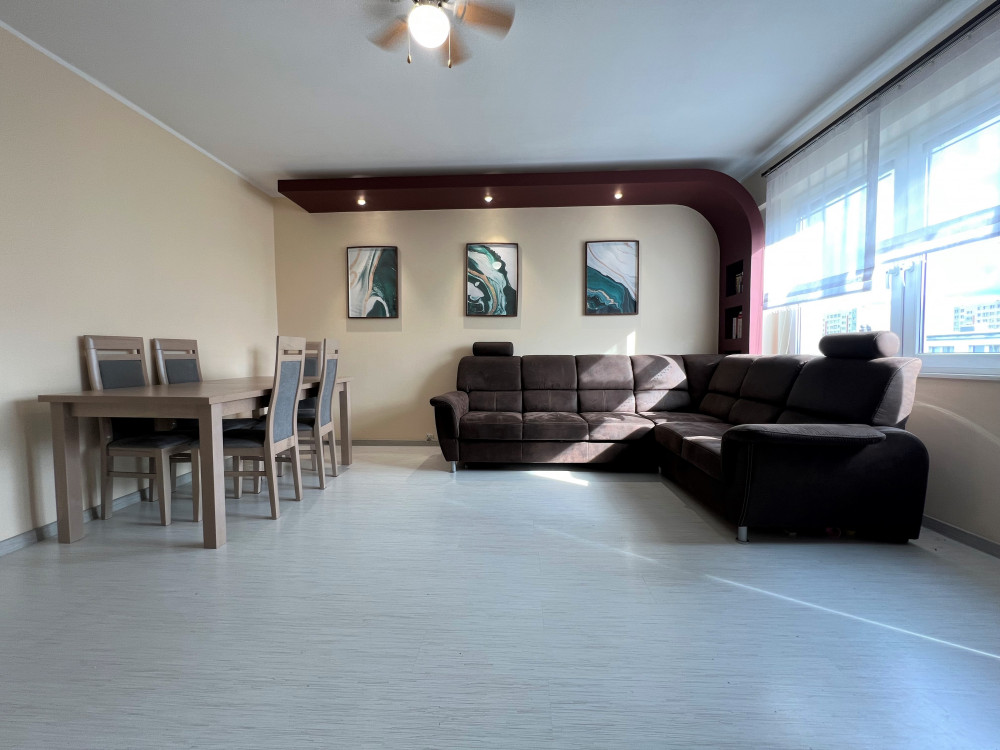 - dużego, bardzo dobrze doświetlonego pokoju dziennego z wyjściem na balkon,