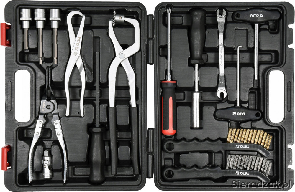 Dzień dobry, w ofercie sklepu posiadamy zestaw do obsługi układów hamulcowych umożliwiający obsługę i regenerację układów hamulcowych. Zawiera 15 elementów wykonanych z wysokiej jakości materiałów, m.in. wytrzymałej stali CrV.