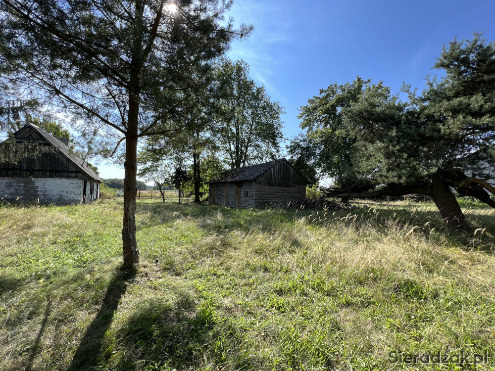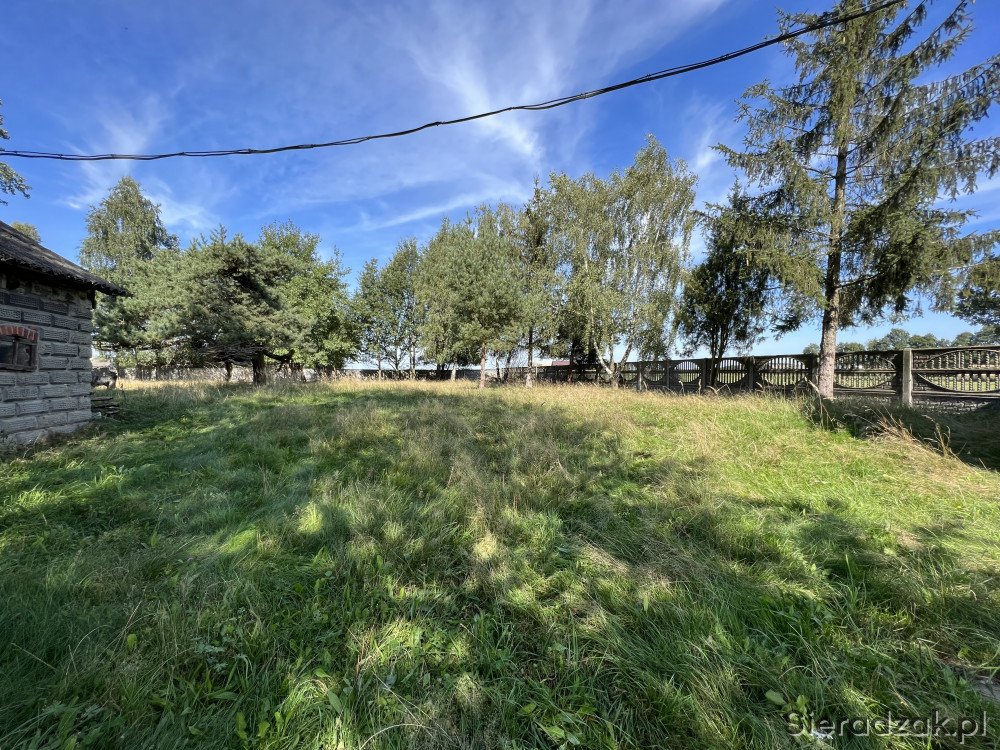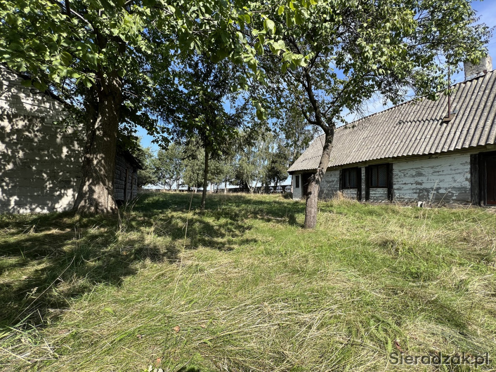 Działka siedliskowa zabudowana budynkiem mieszkalnym drewnianym oraz niewielkim budynkiem gospodarczym w spokojnej zielonej okolicy.