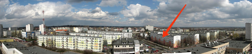 Blok usytuowany jest w centrum miasta, kilkuminutowy spacer wystarcza na dojście do Urzędu Miasta, rynku czy pobliskich placówek handl.-usługowych. Naprzeciwko bloku duży teren parkingowy. Tuż obok park Broniewskiego.