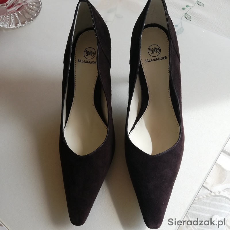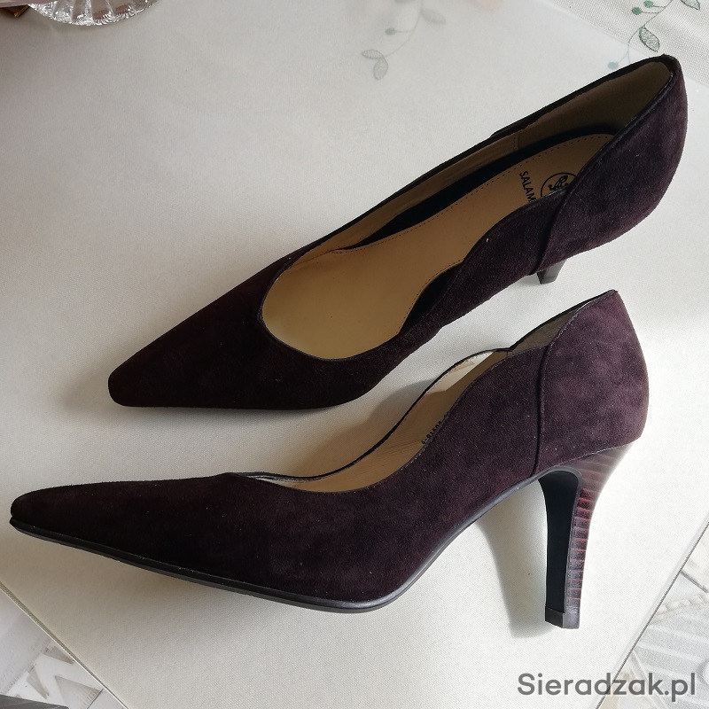 Eleganckie NOWE szpilki SALAMANDER w kolorze brązowym zamszowe.