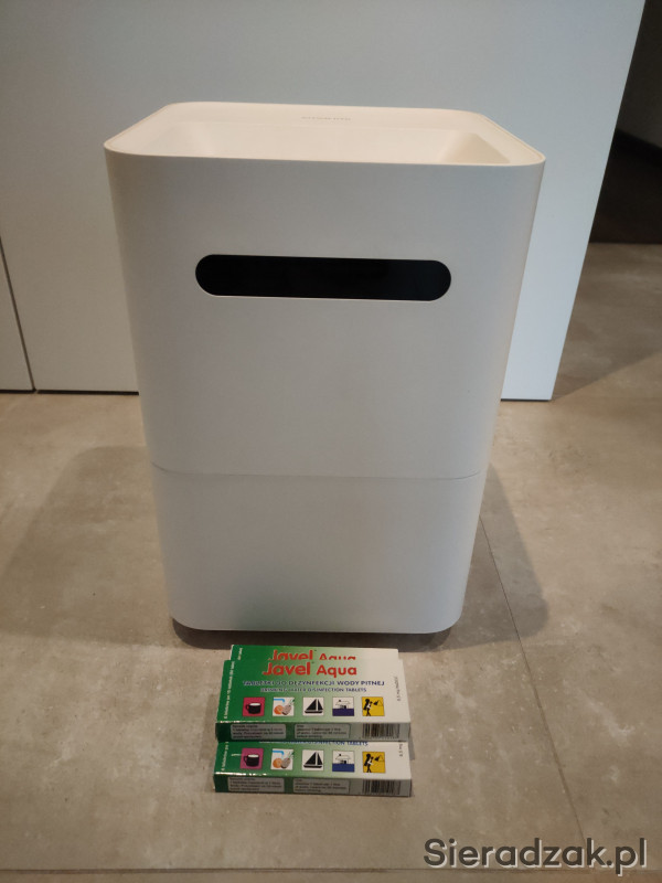 Do nawilżacza dokładam przejściówkę do zasilania i tabletki (kupiłem z nawilżaczem większy zapas) dzięki którym bez problemu można używać wody z kranu.