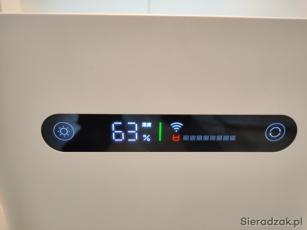 Nawilżacz wyposażony jest w ekran ledowy, który wyświetla najważniejsze informacje takie, jak procentowy poziom nawilżenia, tryb pracy czy aktualny stan wody w zbiorniku. Na ekranie umieszczone zostały wszelkie przyciski, pozwalające na sterowanie urządzeniem. Nawilżacz może być również obsługiwany z poziomu aplikacji Mi Home, nawet będąc daleko od urządzenia. Urządzenie posiada pojemny zbiornik, mieszczący 4 litry wody, który pozwala na 15 godzin nieprzerwanej pracy urządzenia, co bez problemu pozwoli na nawilżenie nawet dużej przestrzeni. Cicha praca urządzenia na poziomie 34.7 dB, daje możliwość użytkowania nawilżacza zarówno w dzień, jak i w nocy.