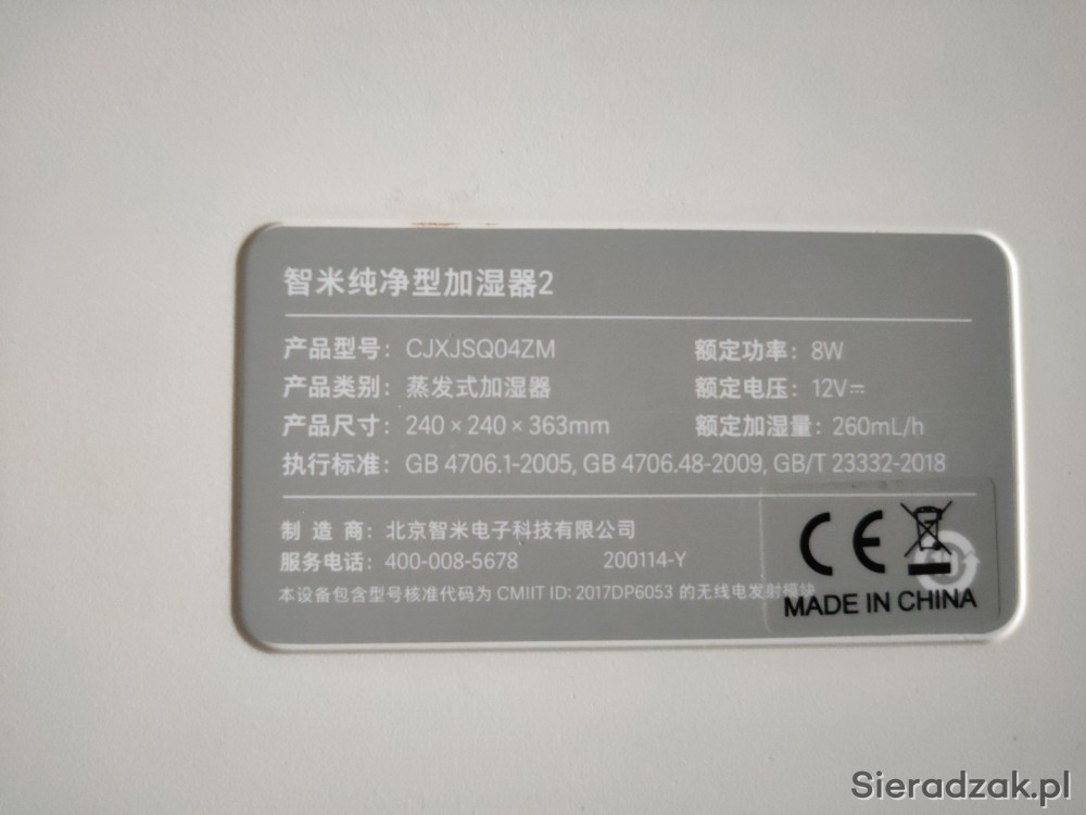 Sprzedam używany, ale w co najmniej bardzo dobrym stanie, nawilżacz ewaporacyjny SMARTMI CJXJSQ04ZM, z uwagi na właściwą wilgotność w domu stoi i się kurzy, a może się komuś przyda. Używany był w niewielkim stopniu przez jeden okres zimowy.