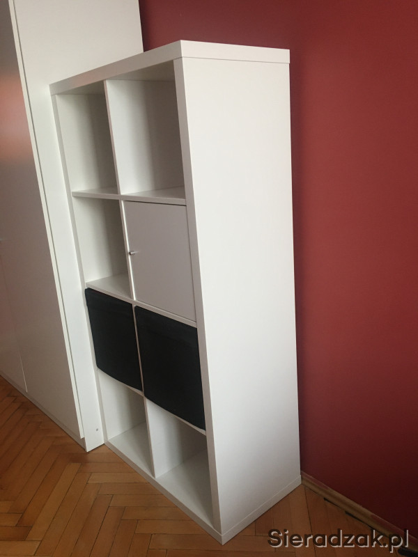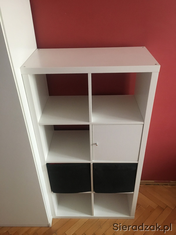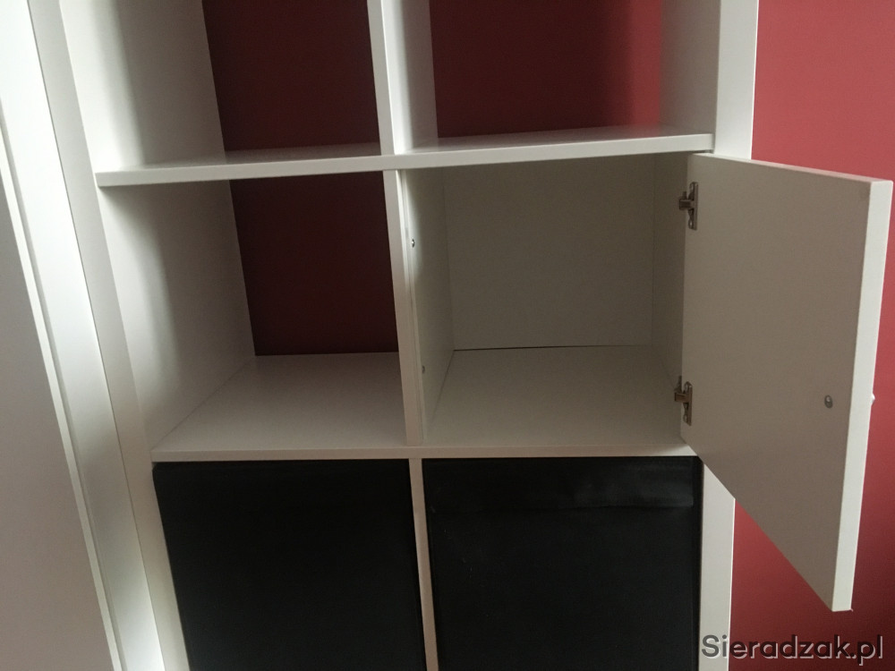 Sprzedam biały regał wraz z drzwiczkami widocznymi na zdjęciu (można je rozmontować) oraz 4 pudełkami (wkładami do regału). Dwa pudełka czarne oraz dwa w biało-czarny kwiatowy wzór. Cena obejmuje cały komplet :)