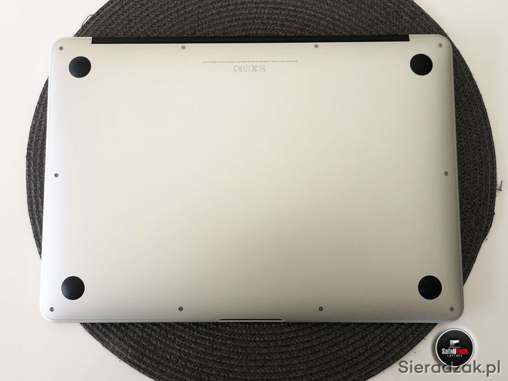 Posiada delikatne, normalne ślady użytkowania. Górna pokrywa bez rys i rysek, posiada jedną delikatną wgniotkę - widoczna na zdjęciu. Touchpad i klawiatura nie wyślizgane. Matryca w bardzo dobrym stanie - powłoka antyrefleksyjna nie wytarta - posiada minimalne ślady odbić od klawiatury (normalne w tym modelu). Brzegi i rogi nie zagniecione i nie podrapane. Dolna pokrywa bez wgniotek - posiada kilka drobnych rysek. Kabel zasilacza zżółknięty - normalne zjawisko w kablach Apple. Komputer zdecydowanie zadbany w rzadko spotykany stanie na rynku wtórnym, bez śladów przygód i upadków.