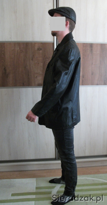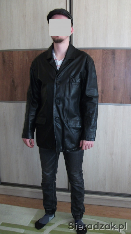 Sprzedam kurtkę męską w stylu klasycznej marynarki z miękkiej naturalnej skóry na podszewce zapinaną na 3 guziki w kolorze czarnym. Kurtka jest odpowiednia dla wzrostu 172-185 cm. Na wszywce jest rozmiar M, ale wg. mnie to jest L dla osób w miarę szczupłych. Model ma 180 cm wzrostu i waży 76 kg.