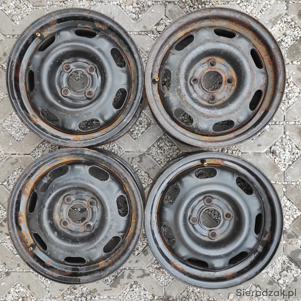 4x felgi stalowe 14" 4x100 6Jx14 ET43, otwór centralny 57,1mm. Felgi w dobrym stanie, proste, jak na zdjęciach. Nowe zawory powietrza.