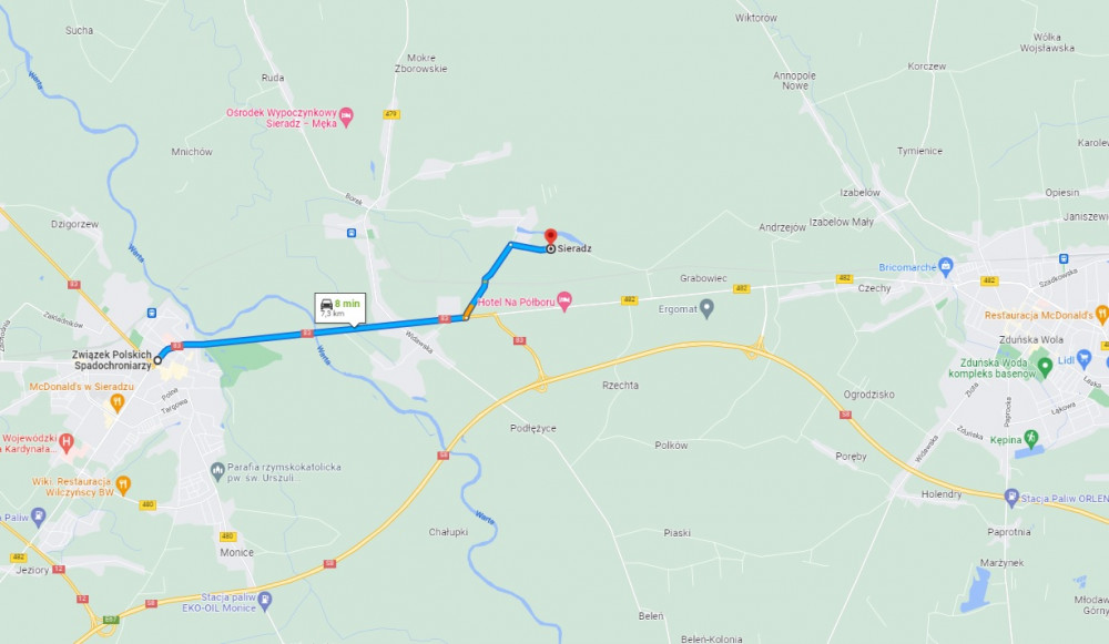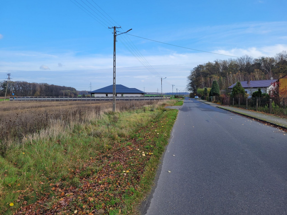 Działka z bezpośrednimi szerokimi asfaltowym wjazdem z równej nowej i oświetlonej drogi gminnej (odśnieżana) z chodnikiem, w drodze przy działce wodociąg, kanalizacja i prąd. Do ronda w Sieradzu równo 7,4km = 8 minut drogi. Do Kino Ratusz w Zduńskiej Woli równo 8 km i 10min.