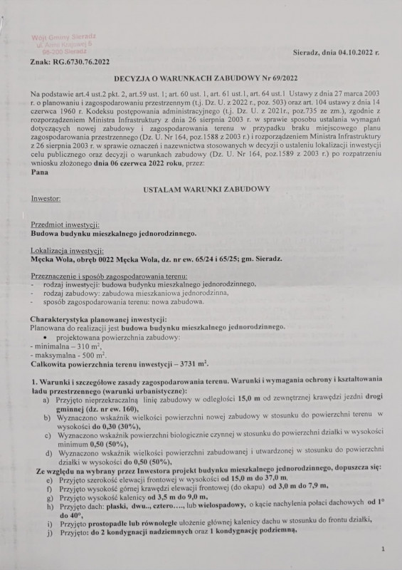 Obecnie jest WZ dla 2 działek wspólnie nr 65/24 + 65/25 na budowę reprezentacyjnej willi:
