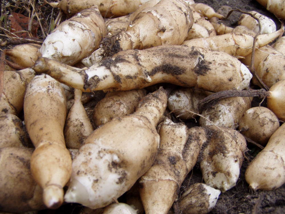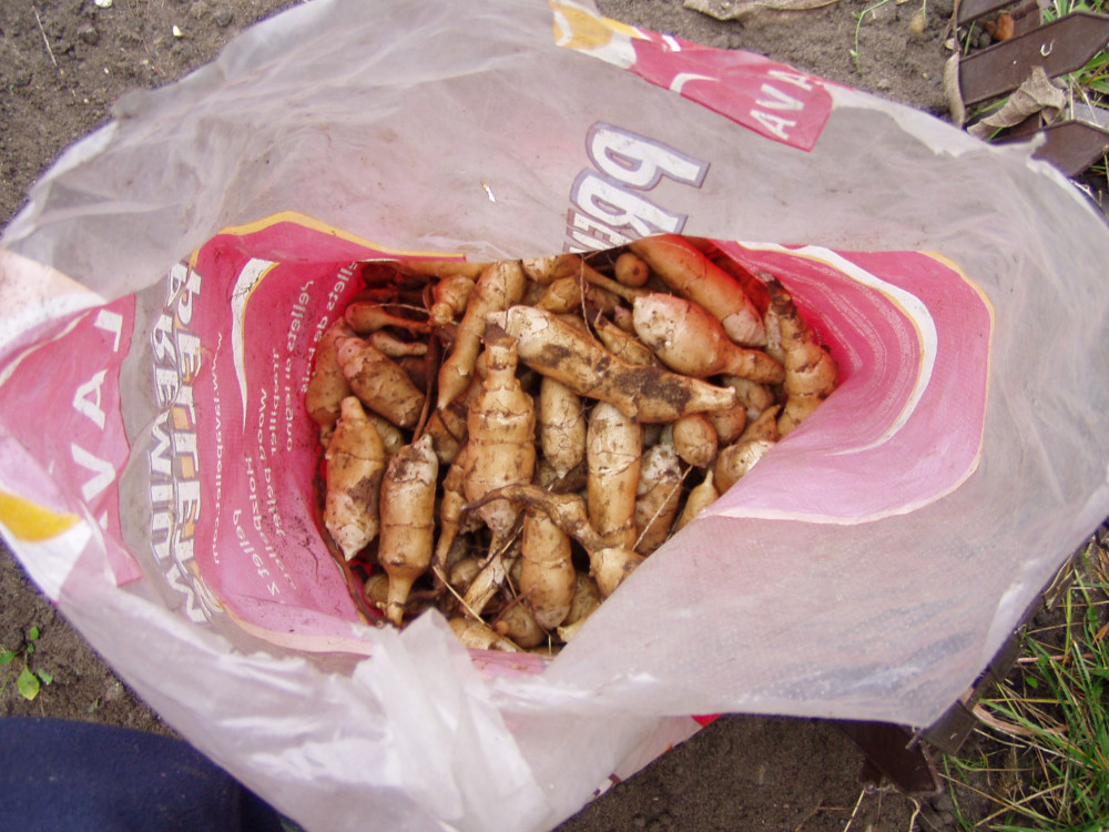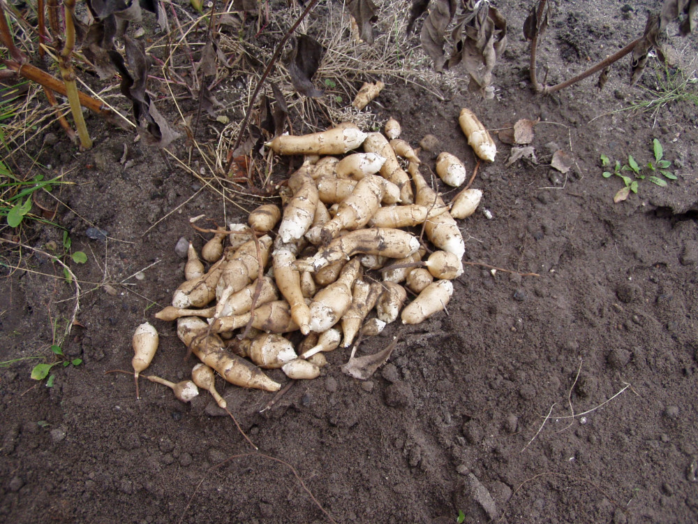Bulwy można przechowywać podobnie jak ziemniaki. Najlepiej w chłodnym miejscu przysypane piaskiem z torfem (do pół roku) lub do codziennego spożywania w lodówce (do 2 tygodni). Można je też mrozić. Lekko przemarznięte bulwy robią się nieco delikatniejsze i słodsze. Może uda się dołączyć jakieś fotki. Polecam!!!