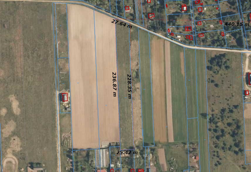 Powierzchnia działki 5700 m2, o wym. 25m x 220 m.